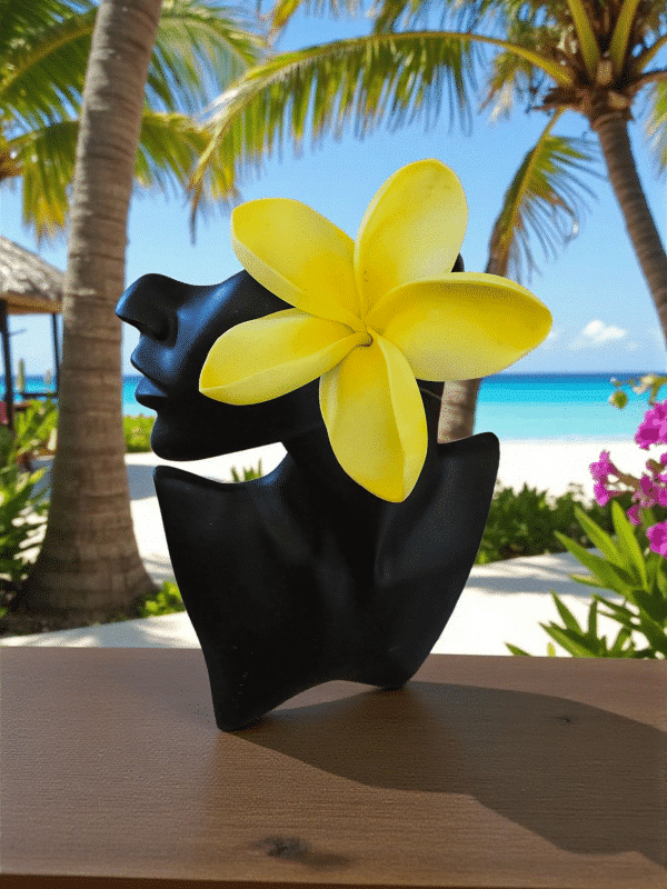 Ajoutez une touche vibrante et tropicale à vos créations avec cette superbe fleur de frangipanier en mousse EVA, jaune d’un réalisme saisissant.